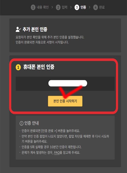 두 번째, 동의하고 서명하기 체크박스에 클릭하고 아래 노란 동의하고 서명하기 클릭!