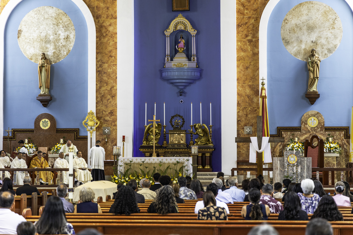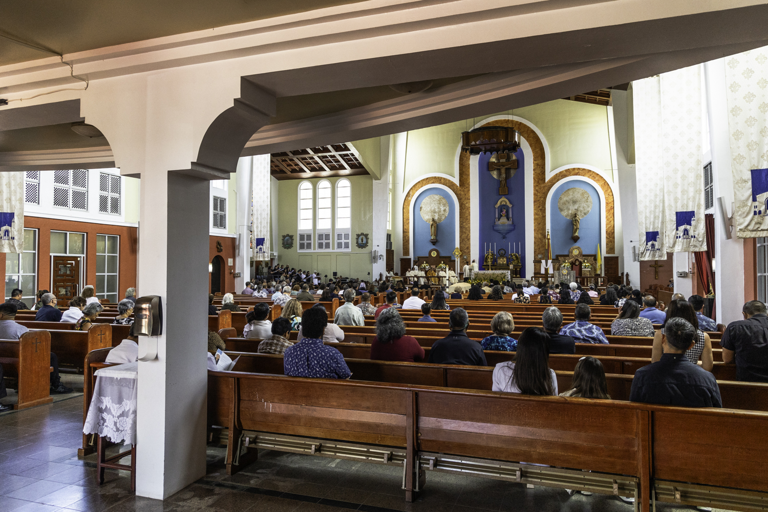 남부투어의 첫 출발지인 스페인광장과 아가냐(하갓냐) 대성당, 정오가 막 지났을 즈음 성당 안에서 소리가 들려서 들어가 봅니다. 넓은 성당 안에는 신부님과 신자들이 모여 미사가 한창입니다. 그런데 보통의 미사가 아니라 장례미사였습니다.