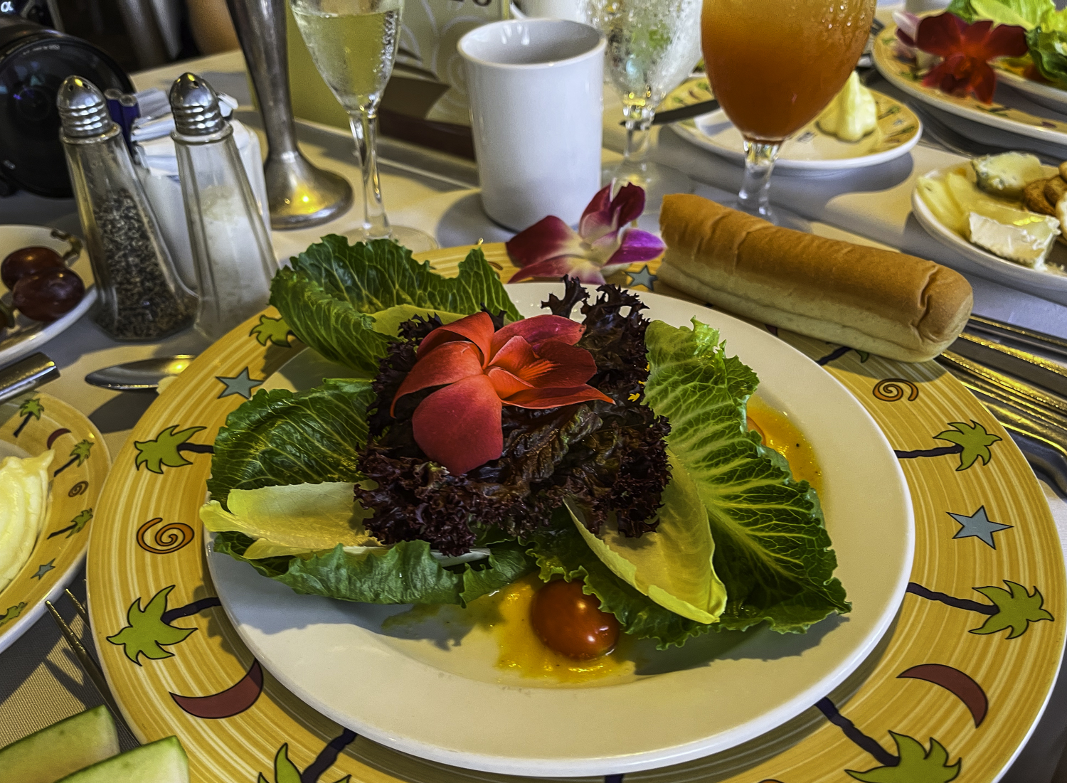 적당히 큰 랍스터에 안심스테이크, 샐러드와 열대과일에 케잌에 음료 두잔이 제공되는 3스타 코스 입니다.
