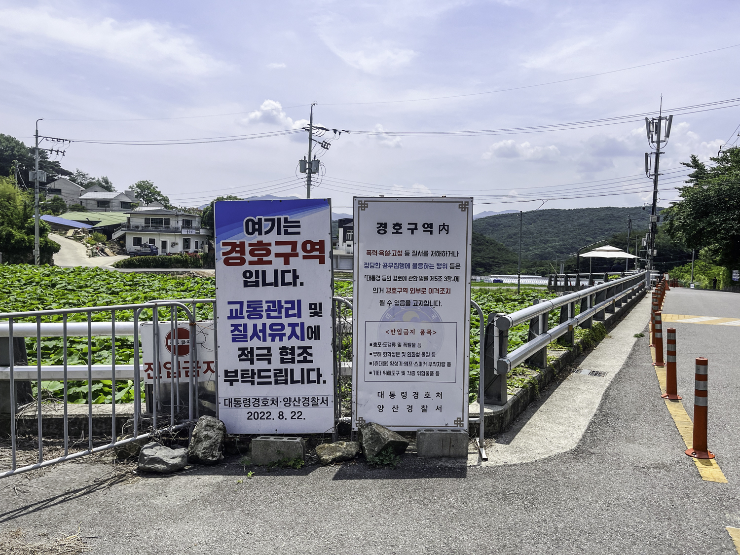 문대통령 사저 가까이로는 갈 수 없고 조금의 거리를 두고 지켜보는 걸로 만족합니다. 하도 이상한 사람들이 많으니 어쩔 수 없겠죠.