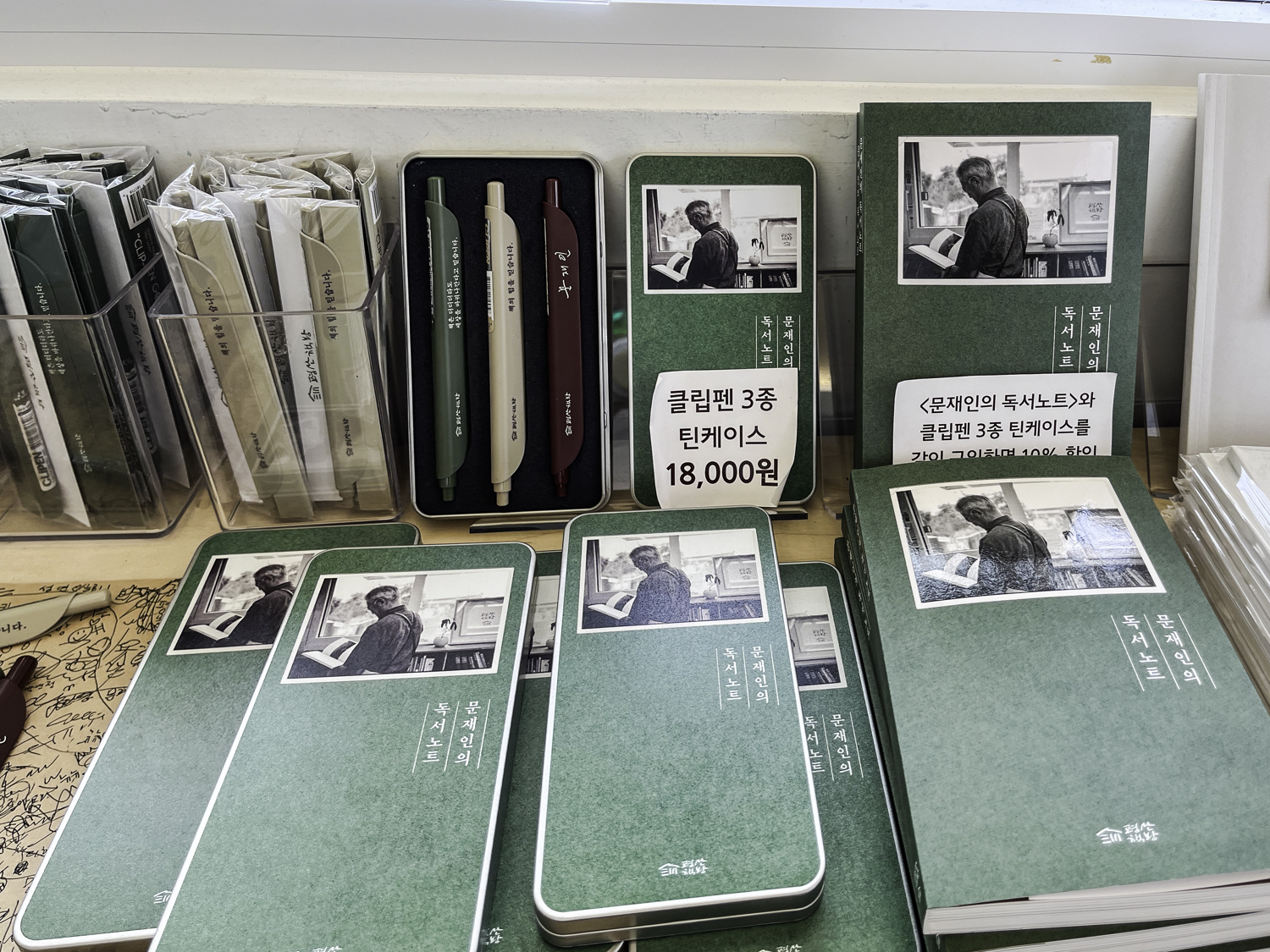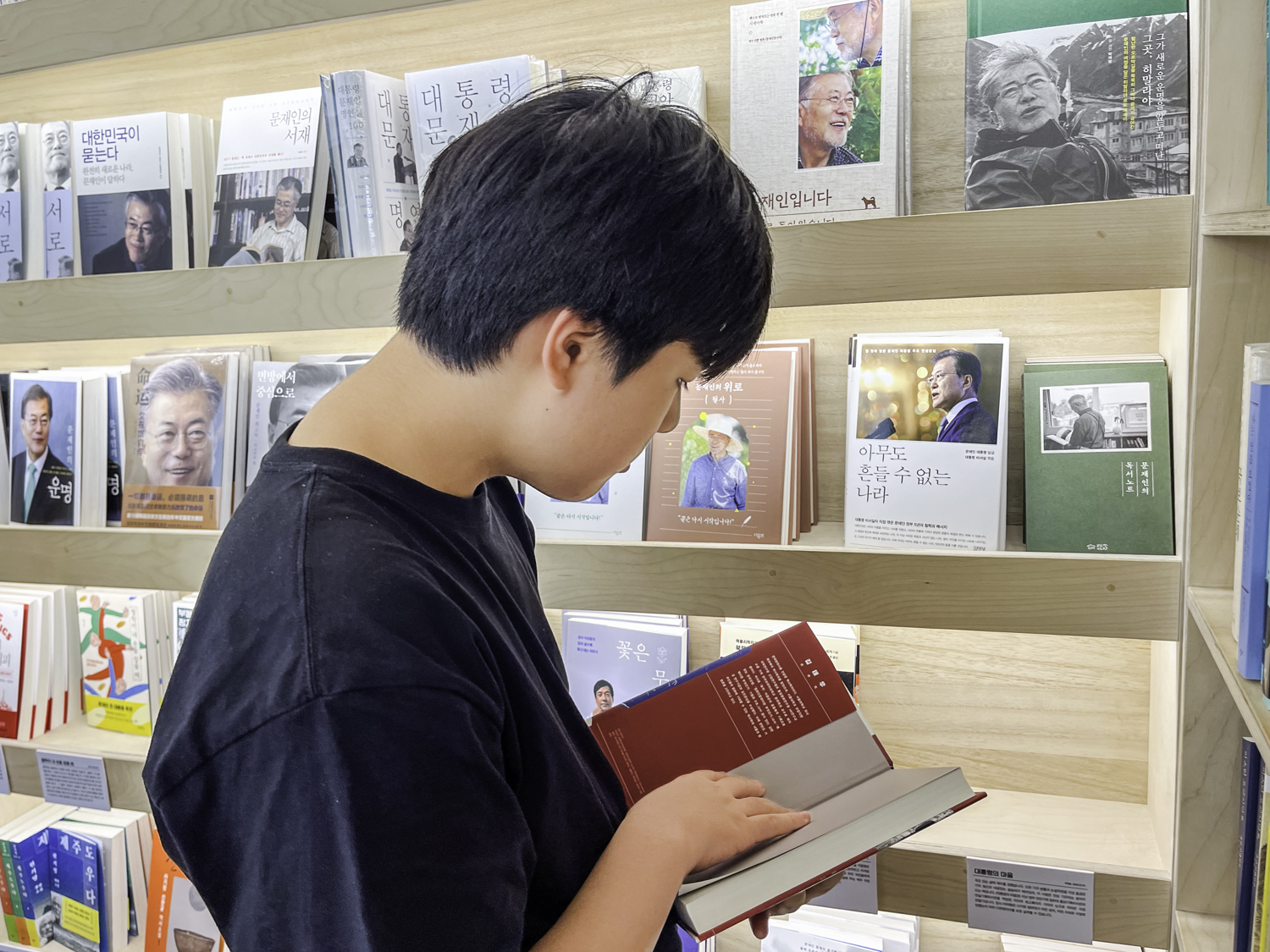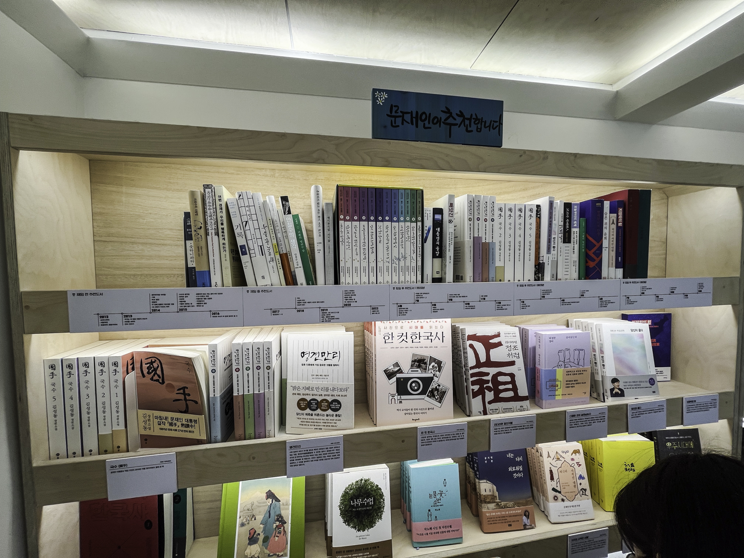 책방 안은 아담하며 독서광 문통이 추천하신 책과 직접 쓰신 책 등이 잘 정리되어 있습니다.