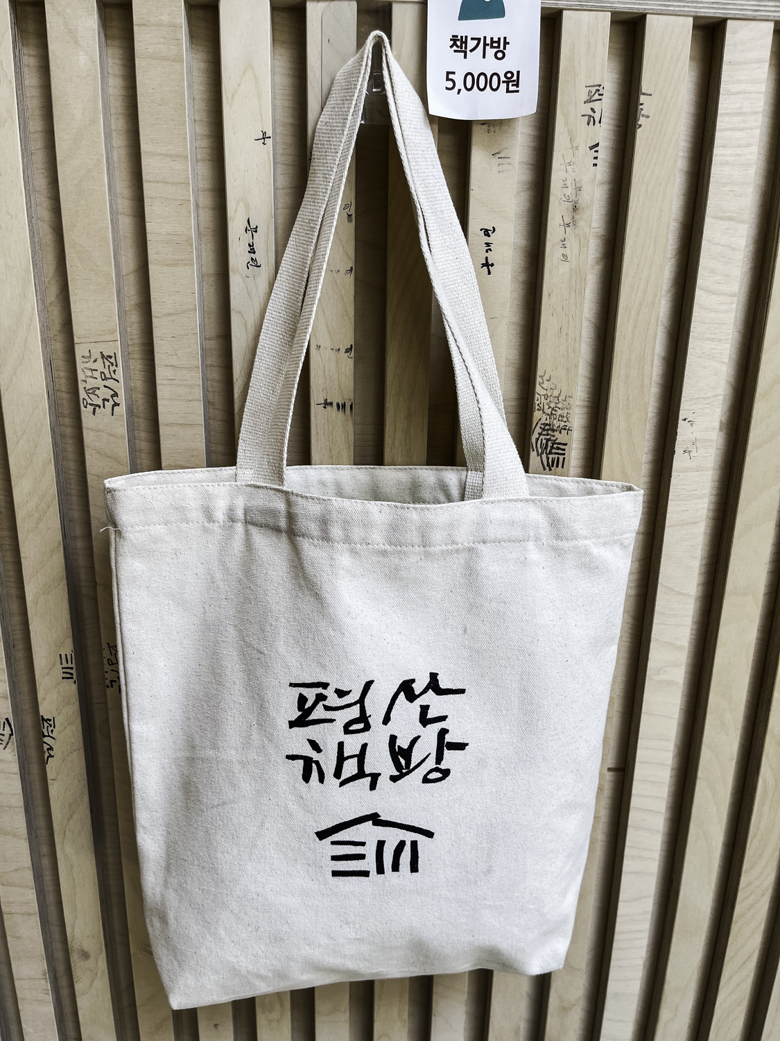 판화가 이철수 님이 만드신 평산책방 로고와 에코백