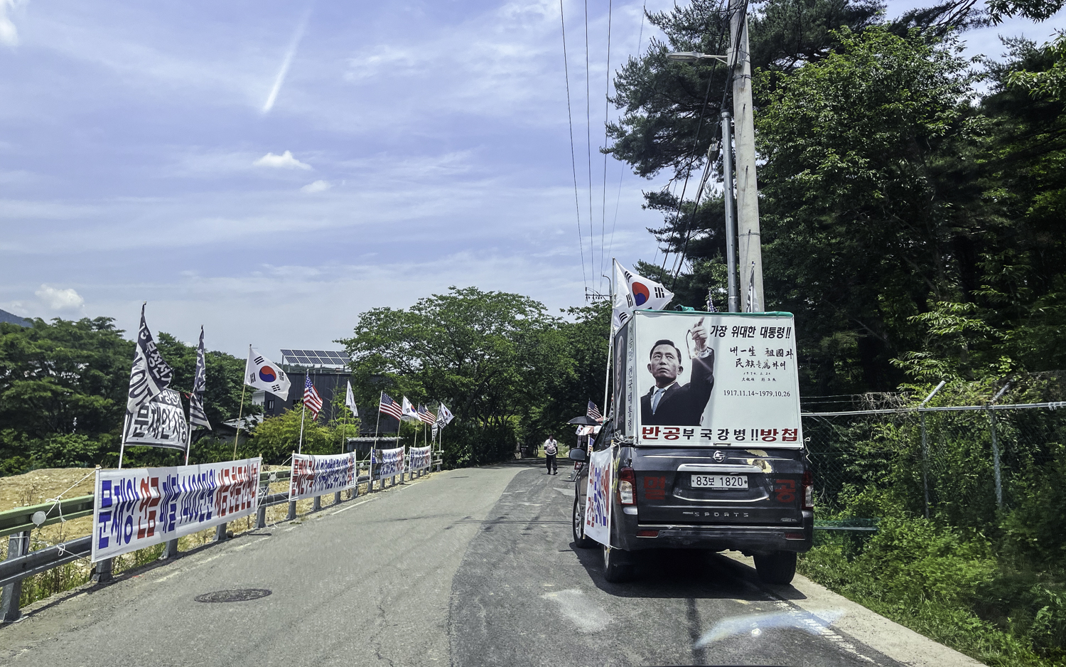 마을이 가까워 질 수록 확성기 소리는 날카로워지기 시작하고 군가와 문 전 대통령에 대한 욕설은 점점 또렷하게 들려옵니다. 여기가 사람 사는 곳이 맞는지 우리나라가 맞는지, 왜 이런 사람들을 이대로 두는지 도무지 이해되지 않는 상황입니다.