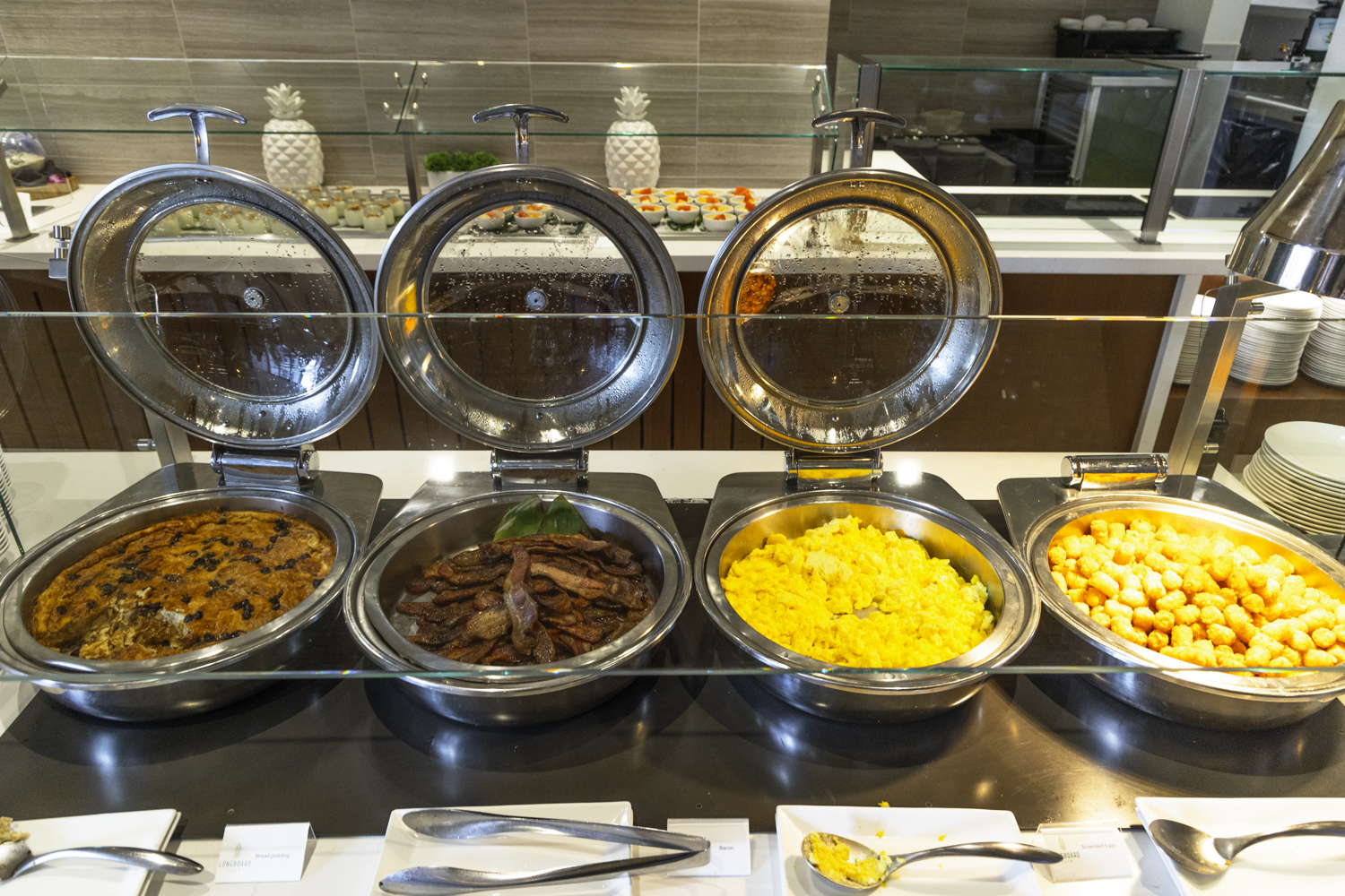 베이컨, 애그스크램블, 감자, 소시지, 볶음밥 등등 하와이 전통 요리부터 미국식 브런치 메뉴까지 다양한 음식이 제공됩니다.