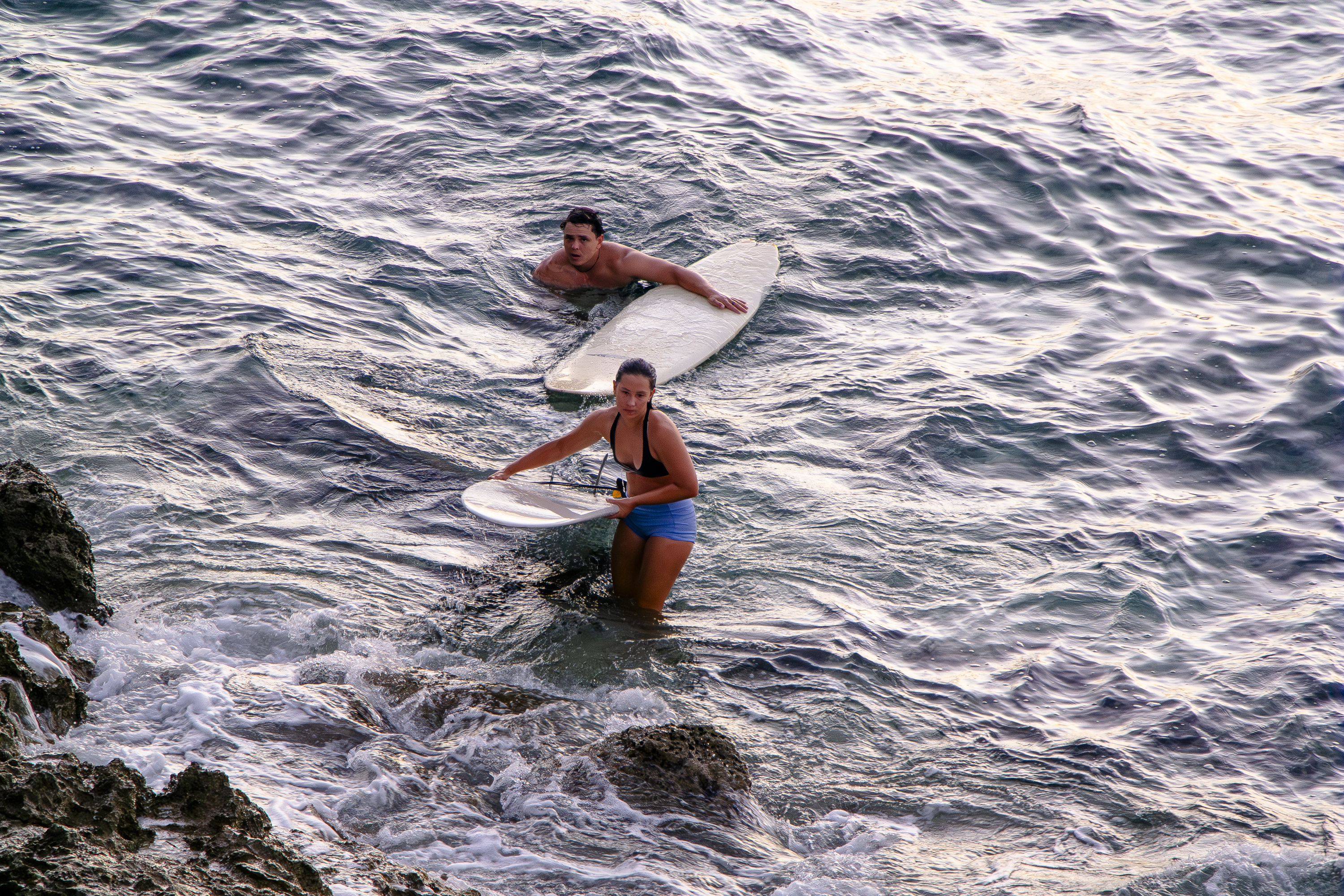하루를 바다에서 보내고 나오는 서퍼들과, 선셋과 조우를 위해 바다로 들어가는 서퍼들이 교차됩니다.