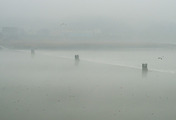 수중보에서 본, 김포쪽 풍경입니다. 이곳은 소 수위가 낮아 갯벌이 드러나는 곳이기도 합니다. 지금은 갯벌이 어딘지 유빙에 덥혀 할 수 없습니다.