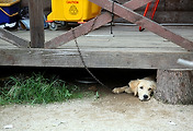 도법스님이 거처하는 소담한 건물, 이름이 '목탁'이다. 그 앞마당에서 발바리가 나를 바라본다.