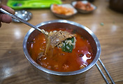 마지막 식사는 보통 짜장면 그릇의 1/2정도 되는 미니그릇에 담겨 나옵니다. 빨갛지 않으면서도 칼칼한 육수에 채소와 푸짐한 해물이 잘 녹아 있어 뭔가 오래도록 진하게 우려낸 사골의 맛이 나는것 같습니다.