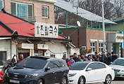 오후 한시를 살짝 넘긴 시간인데 식당앞에는 사람들이 많지 않습니다, "이제야 방송발이 좀 떨어졌나" 라는 생각이 들었지만, 식당안은 만석, 대기도 우리앞에 4팀이나 있습니다. 이정도는 기다리고도 남습니다. 콧 웃음을 치며 식당앞 플라스틱 의자에 앉아 기다리니 자리가 금방 금방 납니다. 10분정도 기다려서 자리에 앉았습니다.