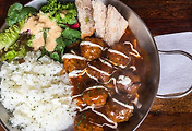 겉은 바싹하게 구워졌고 촉촉한 속에는 미트볼과 채소류가 빽빽하게 들어 있습니다.